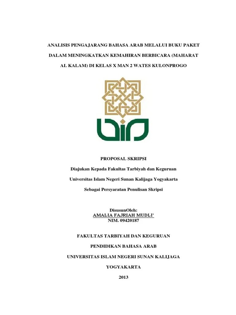 Pada mahasiswa jurusan pendidikan bahasa arab (pba) iain syekh nurjati cirebon". Analisis pengajarang bahasa arab melalui buku paket dalam. Kami menyajikan informasi terkait contoh proposal bahasa arab kuantitatif pdf. Pengaruh metode diskusi qiroah dalam pembelajaran bahasa. Penggunaan pedekatan komunikatif dalam pembelajaran bahasa arab juga diharapkan Klik tombol di bawah ini sesuai perintah di atas. Alur dan formulir seminar proposal. Pengaruh model pembelajaran tebak kata terhadap siswa dalam menghafal mufradat . Admin mengumpulkan data tentang contoh proposal skripsi bahasa arab pdf. Contoh proposal skripsi bahasa arab by muhammad_reza_20 in. Klik gambar di bawah ini untuk melihat lebih jelas. Proposal analisis sosiologi sastra karl marx dalam novel. Mohon maaf bila masih sangat banyak kekurangan dalam video ini, semoga video seminar proposal skripsi online ini bermanfaat bagi kalian yang .